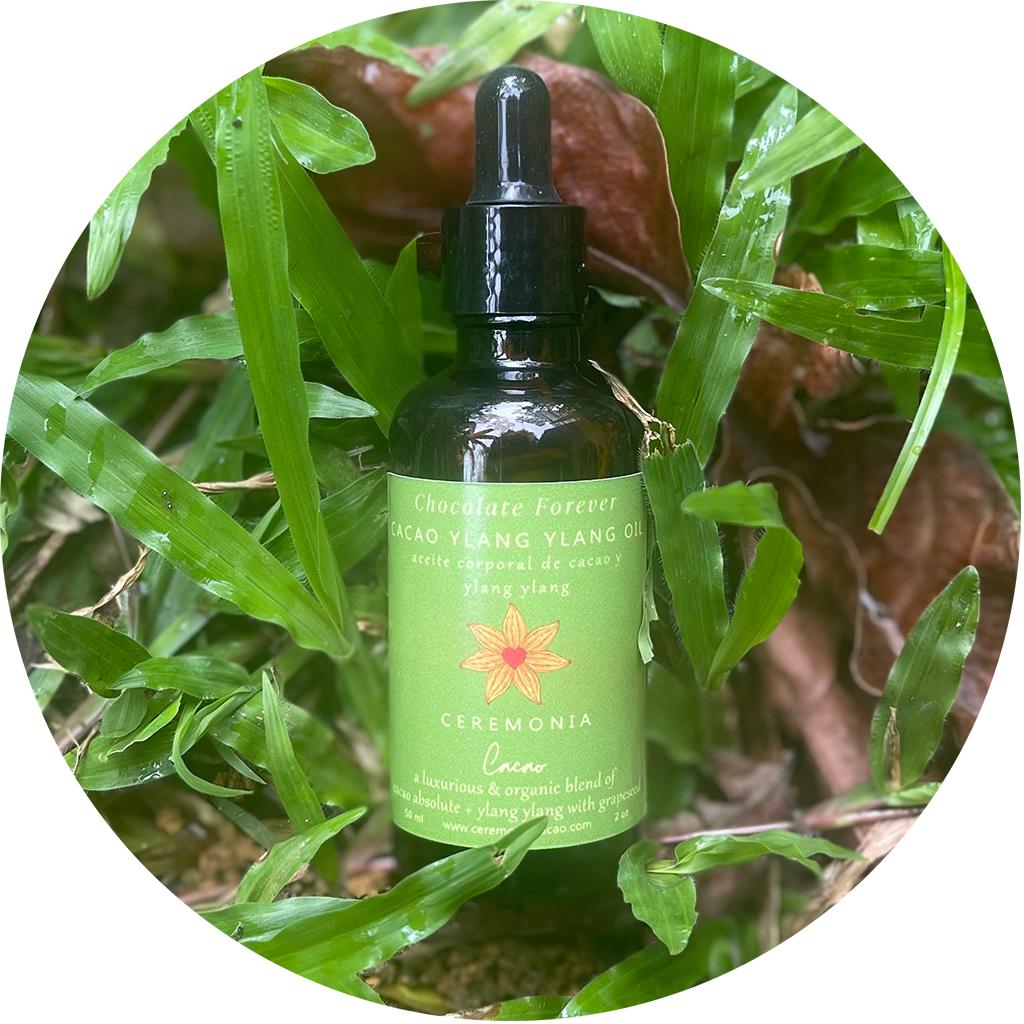 Chocolate Forever Cacao Ylang Ylang Oil is a luxurious, silky body oil that nourishes the skin with love.